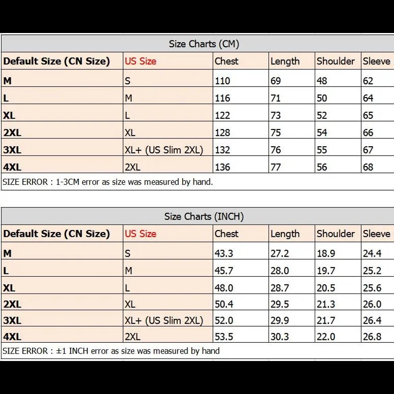 Size: Refer to picture for size chart (The jacket run small compared to US size, please follow the size chart to obtain the correct sizing)